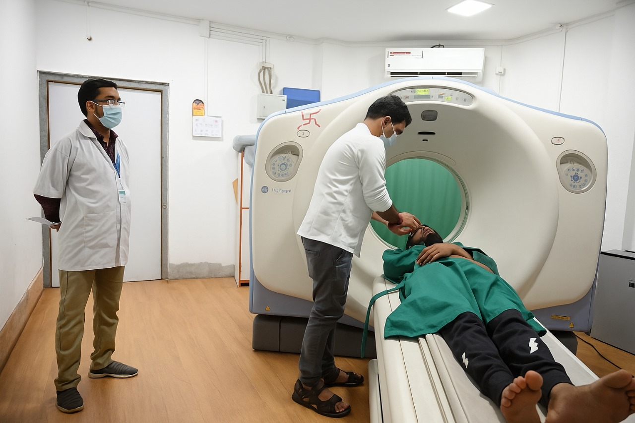 CT scan by senior radiographer