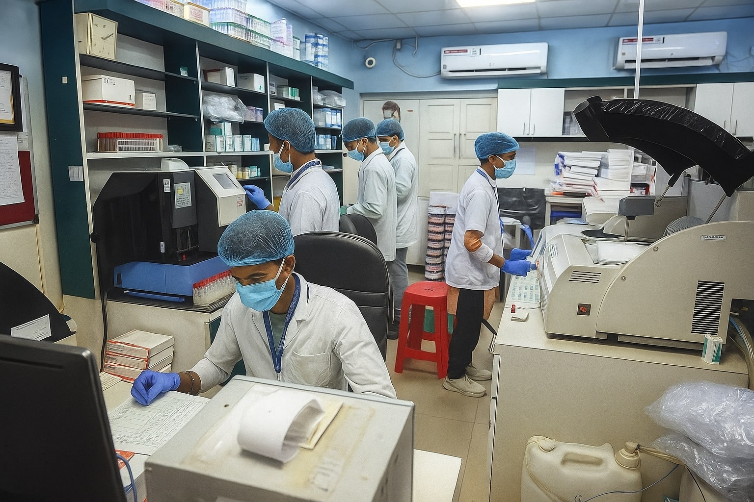 Microscopic examination of body fluids, urine analysis, and routine clinical investigations.